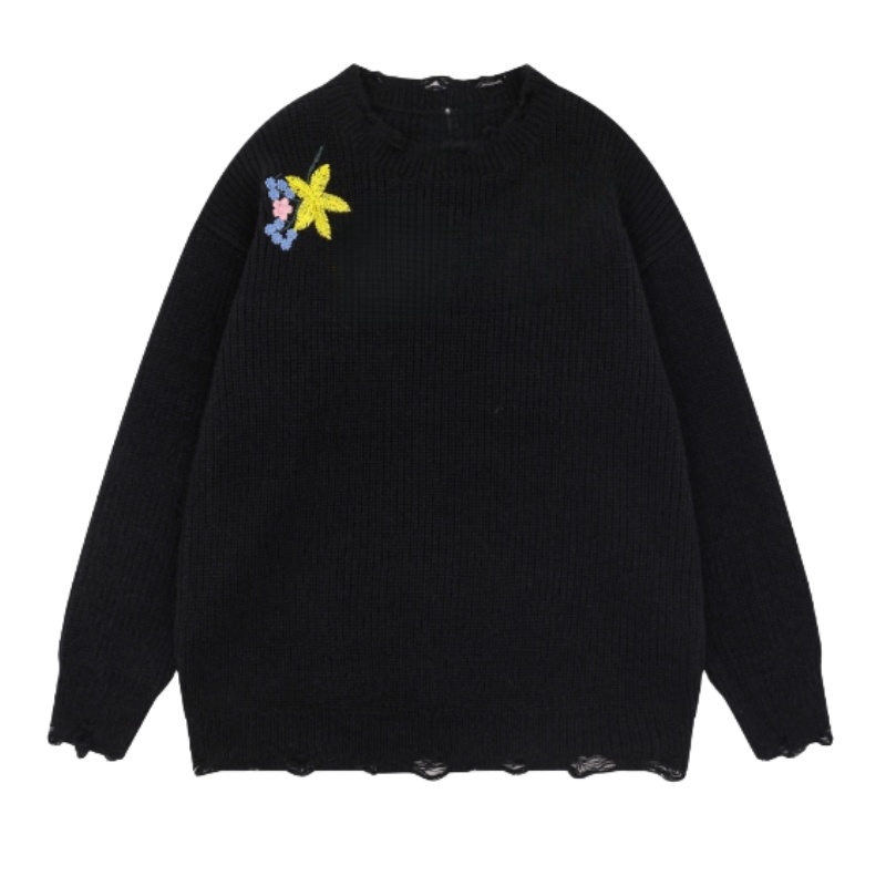 Black Floral Print Oversized Sweater